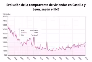 El número de fincas transmitidas en la comunidad autónoma de Castilla y León en el mes de enero alcanzó las 13.596, un 3,6 por ciento menos que en 2018, con 1.890 transmisiones por compraventas de viviendas (-3,9 por ciento), según la Estadística de Transmisiones de Derechos de la Propiedad publicada por el Instituto Nacional de Estadística (INE) en función de los datos facilitados por el Colegio de Registradores de la Propiedad, Mercantiles y Bienes Muebles de España.