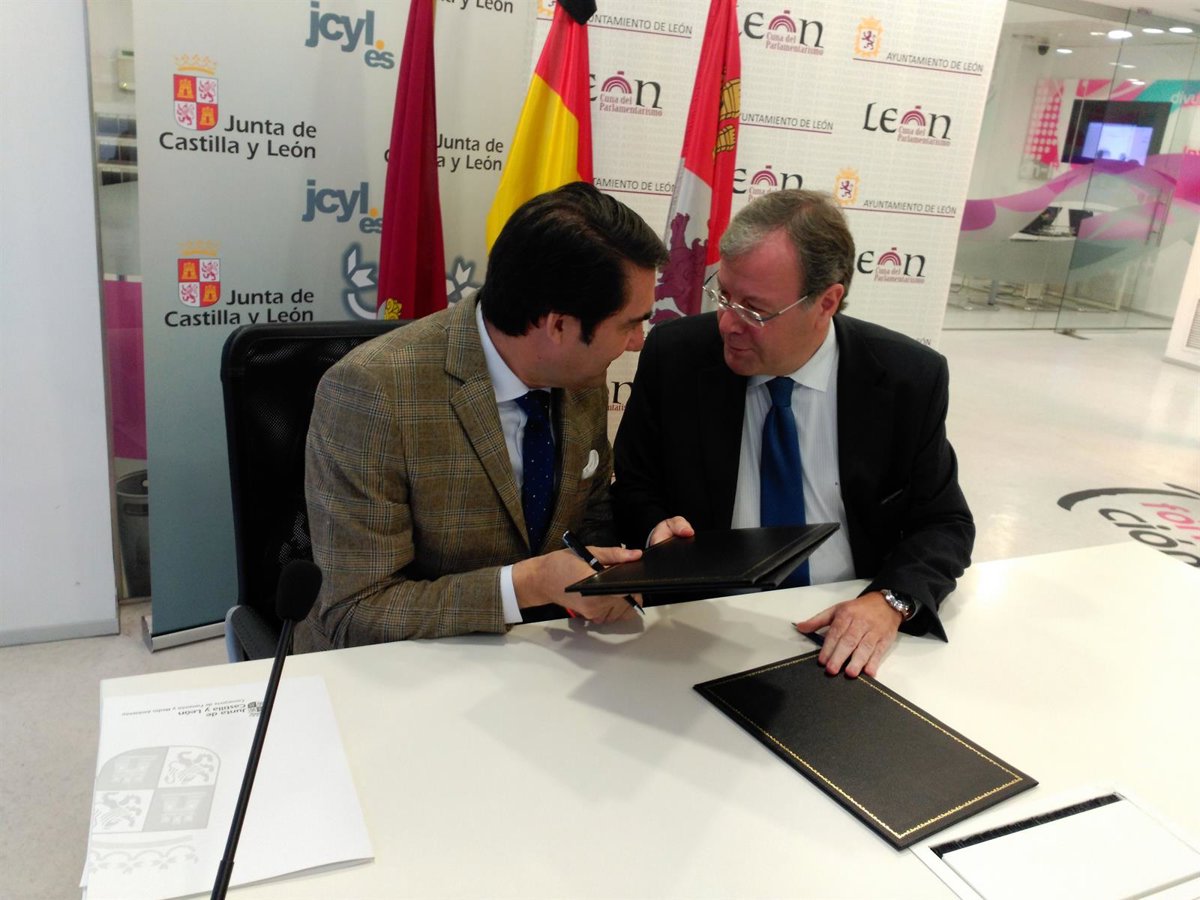 El alcalde de León, Antonio Silván, y el consejero de Fomento y Medio Ambiente, Juan Carlos Suárez-Quiñones, han suscrito este lunes la prórroga de un convenio de colaboración que tiene como objetivo "renovar, ratificar y reafirmar" el compromiso de ambas instituciones para facilitar la inclusión digital de los leoneses a través del Espacio Digital CyL y de las nuevas tecnologías.