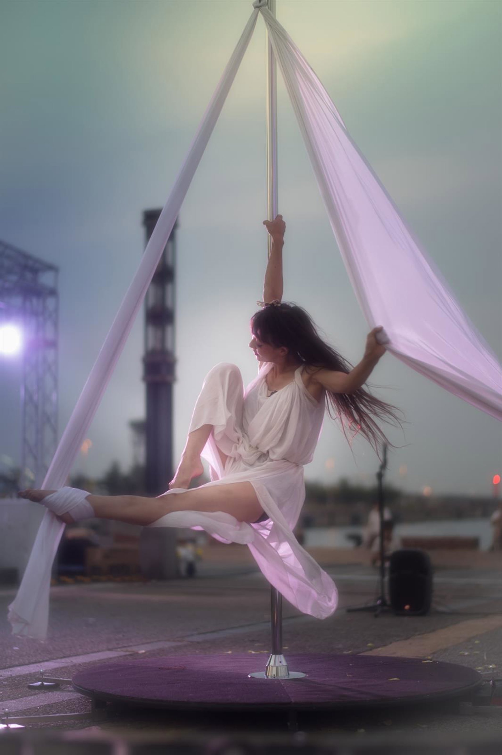 A continuación, la artista japonesa Meriko interpretará su característico Street Pole Dance, una danza en barra en la que demostrará su fuerza física combinada con movimientos artísticos. En su repertorio mostrará bailes de fuego y aéreos que incorporan una gran variedad de técnicas de bailes modernas y originales.