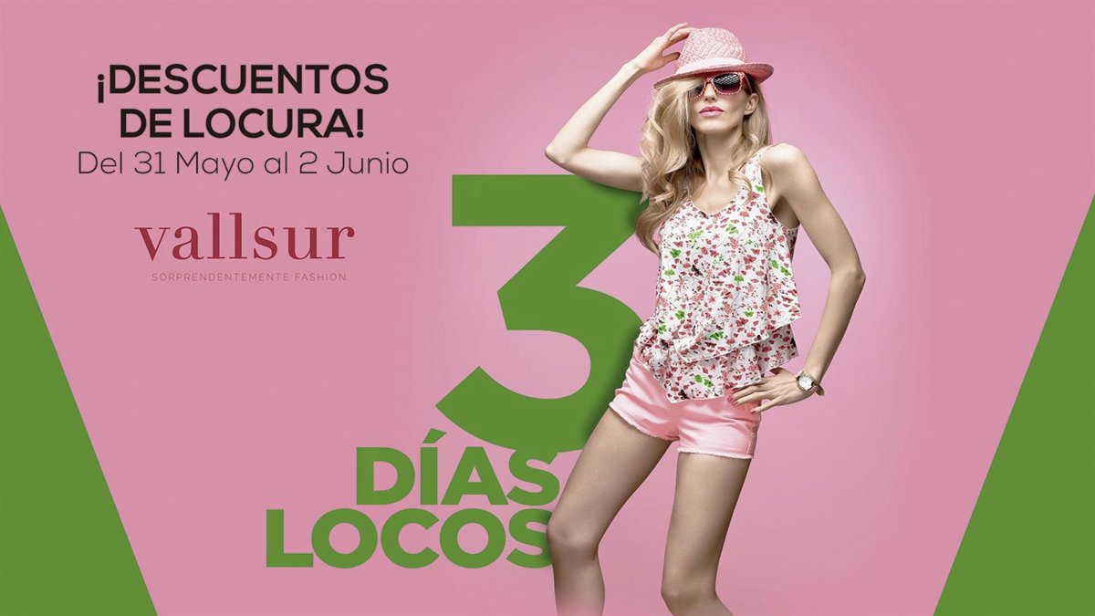 El centro comercial Vallsur de Valladolid ha puesto en marcha una campaña de descuentos y promociones en distintos establecimientos del centro comercial que se llevarán a cabo del 31 de mayo al 2 de junio, los denominados "3 días locos" para que los clientes tengan la oportunidad de renovar su armario de cara a la nueva temporada.