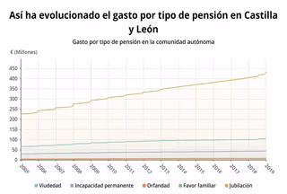 El número de pensiones contributivas en Castilla y León se situó en 613.434 en el mes de marzo, un 0,5 por ciento más (1,3 por ciento en España), con una cuantía media de 974,68 euros, por debajo de la media nacional que es de 986,71 euros, según los datos del Ministerio de Trabajo, Migraciones y Seguridad Social recogidos por Europa Press.