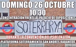 Cartel informativo del acto reivindicativo de este domingo en León capital ante la presencia de Pedro Sánchez. - PLATAFORMA SOTERRAMINTO SAN ANDRÉS