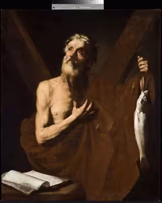En el lienzo, la figura del santo aparece iluminada con un fuerte tratamiento de claroscuro sobre el fondo casi negro, lo que corresponde al estilo tenebrista de Ribera, en cuyo taller son frecuentes en esos años los encargos de apostolados con este tratamiento pictórico, han informado en un comunicado.