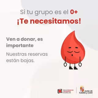 "Si este es tu grupo de sangre, es importante que vengas a donar hoy", insiste el Centro de Hemoterapia y Hemodonación de Castilla y León en un nuevo mensaje en las redes sociales en el que también da la bienvenida a los donantes del resto de los grupos.