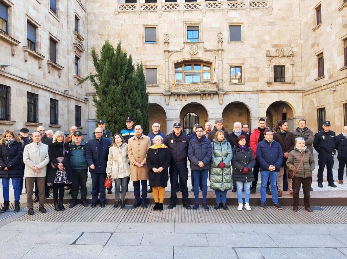 En Salamanca, una treintena de representantes institucionales, de Cuerpos y Fuerzas de Seguridad del Estado y de organizaciones se ha concentrado en la Plaza de la Constitución, junto a la sede de la Subdelegación del Gobierno, para mostrar su "rechazo" a la violencia machista y para "compartir el dolor" por el fallecimiento de la mujer vallisoletana y su hija.
