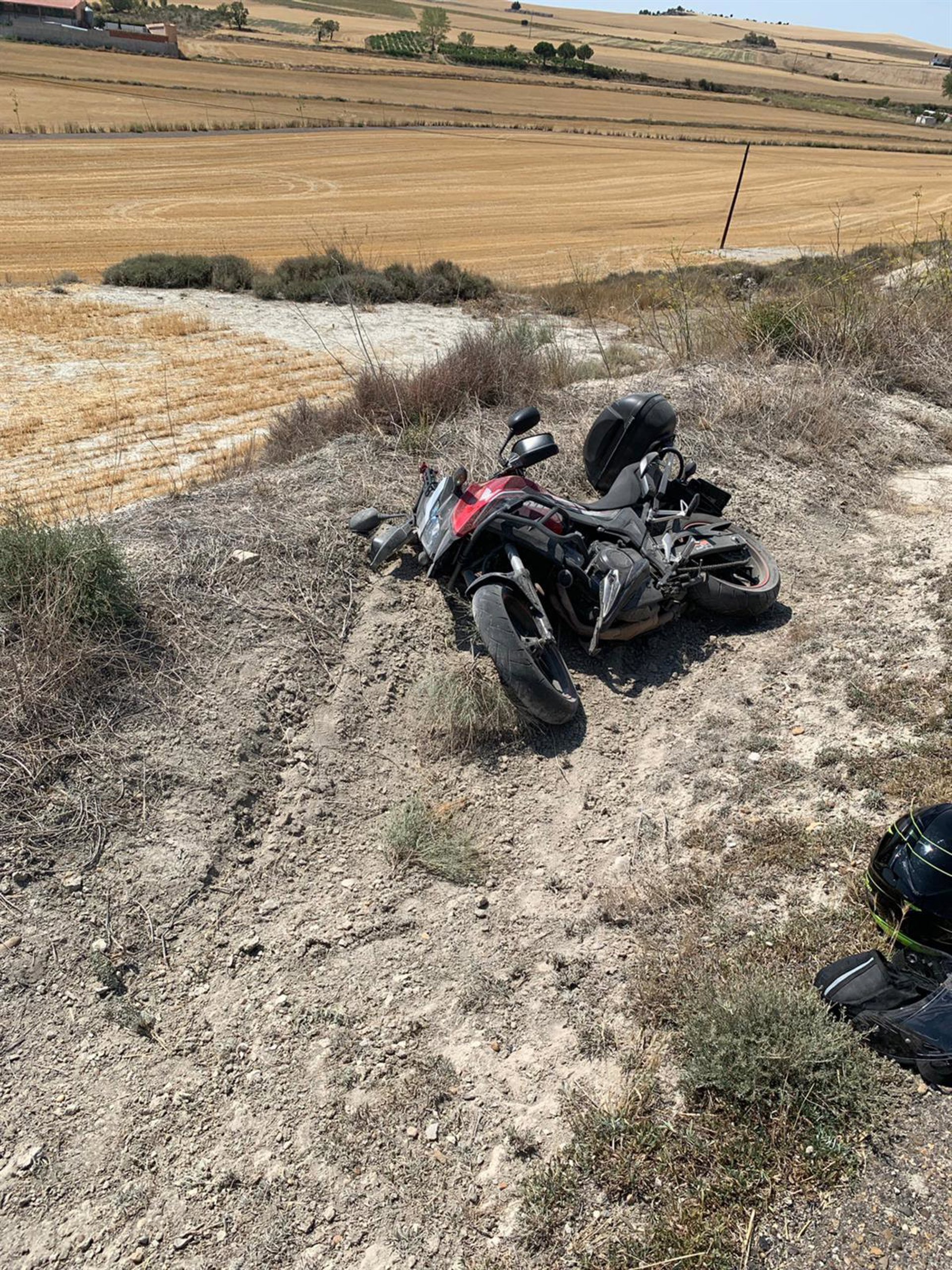 Estado de la motocicleta tras el accidente en Corcos del Valle. - EUROPA PRESS.