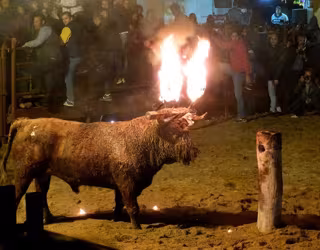 Otros antropólogos remontan la tradición a la Edad de Bronce mientras que otros relacionan este tipo de fiesta con el toro a la Casa Real y a la aristocracia con motivo de visitas, nacimientos, bodas... en los siglos XVI, XVII y XVIII. También se suele recordar a Tito Livio que contaba que Aníbal al luchar con los romanos empleó en alguna ocasión toros con las astas encendidas para fingir una marcha de soldados o abrirse paso.