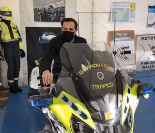 El presidente de la Diputación, Conrado Íscar, monstado sobre una moto de la Guardia Civil de Tráfico durante su visita al expositor de la DGT en la concentración motera Pingüinos. - EUROPA PRESS