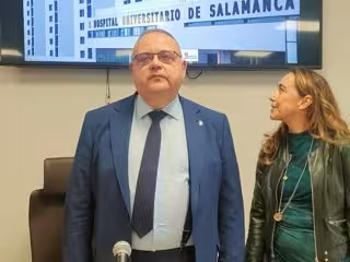El consejero de Sanidad, Alejandro Vázquez (i), junto a la nueva gerente del Hospital de Salamanca, Carmen Rodríguez (d) - EUROPA PRESS
