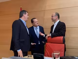 El presidente del Consejo de Cuentas de Castilla y León, Mario Amilivia, conversa con Salvador Cruz (izda) y el presidente de las Cortes, Luis Fuentes (dcha). - EUROPA PRESS
