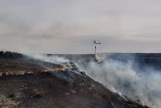 Descarga de un helicóptero en las tareas de lucha contra el fuego en Gredilla de Sedano. - JCYL