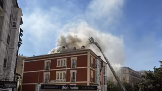 En este edificio de la calle Nuño Rasura se encuentra el restaurante el Rincón de España aunque, en principio, las llamas no han afectado a este establecimiento.