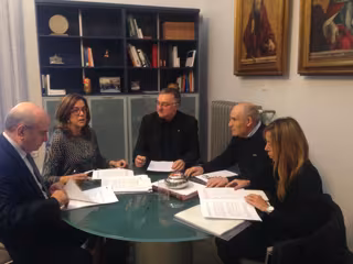 Al encuentro, en el que se ha hecho un balance al convenio de 2014, han asistido, además, el delegado diocesano de obras, Juan Antolín, y la diputada de Cultura, Carmen Fernández.