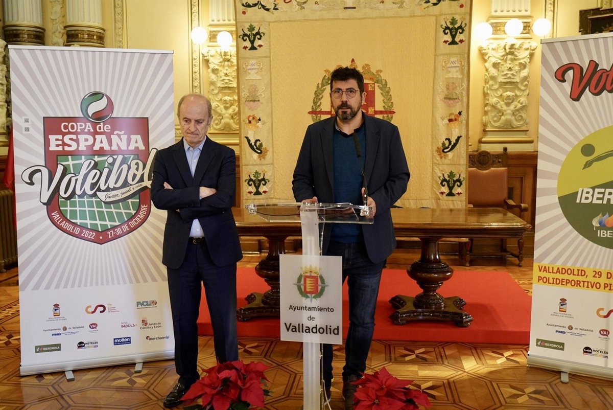 El concejal de Participación Ciudadana y Deportes, Alberto Bustos, ha presentado el evento que se celebrará en Polideportivo Pisuerga y en el que ha estado acompañado por el presidente de la Real Federación Española de Voleibol, Agustín Martín Santos. Al acto también ha asistido el presidente de la Federación de Voleibol de Castilla y León, Antonio Sangrador, y distintos miembros de la Corporación Municipal.