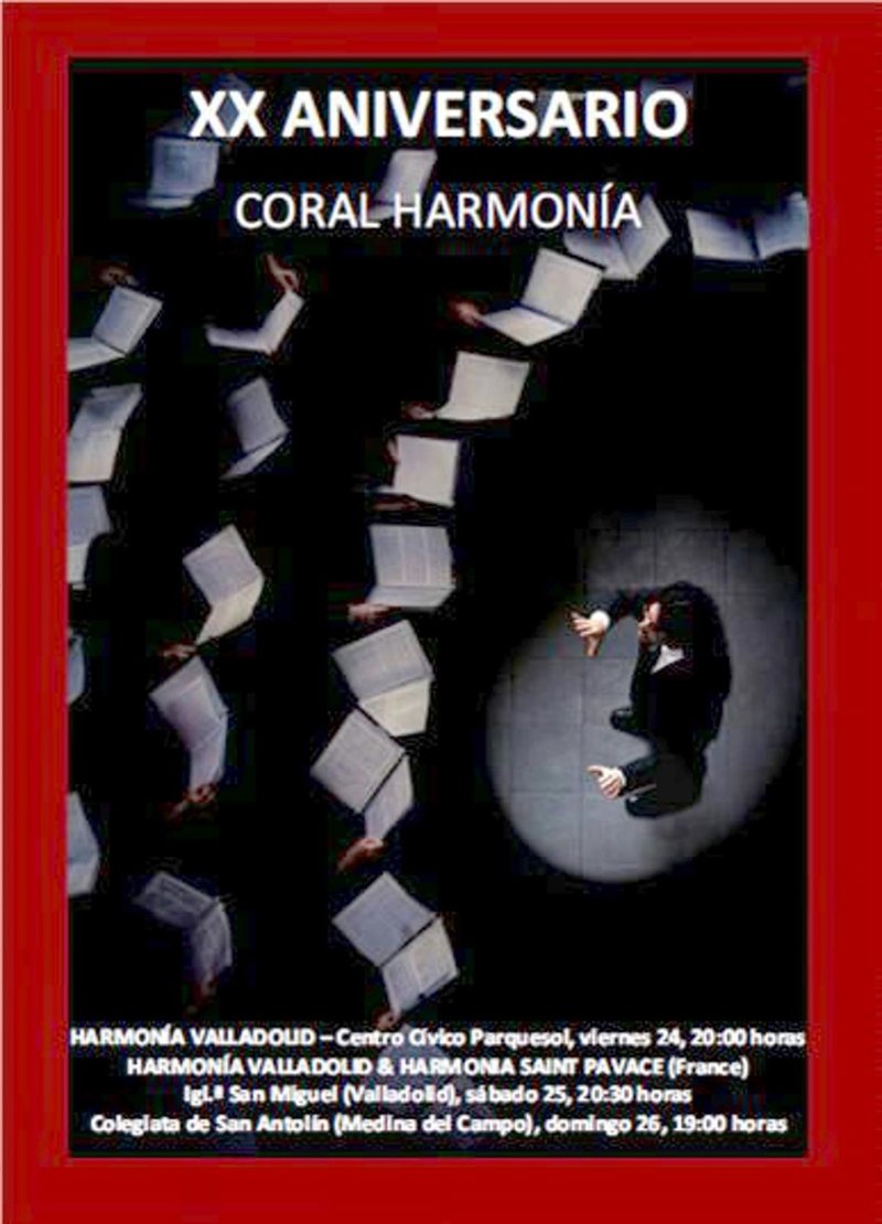 La Asociación Coral Harmonía de Valladolid celebra entre este viernes y el domingo el XX aniversario de su creación con tres conciertos, dos de ellos en la capital y uno en Medina del Campo, según informaron a Europa Press fuentes de la agrupación musical.