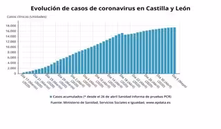 En el caso del total de 21.719 positivos por COVID-19 en Castilla y León, 17.430 de ellos han sido confirmados con test PCR, 96 más en las últimas 24 horas.