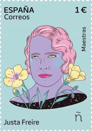 A los sellos dedicados a Clara Campoamor, Isabel Zendal, Almudena Grandes, Dolors Aleu, Concepción Arenal, Elidà Amigó, María Blanchard, Luisa Roldán (La Roldana), Maruja Mallo, María de Maeztu, Elena Fortún y Lucía Sánchez Saornil, dentro de la colección #8MTodoElAño, se une ahora el de Justa Freire.