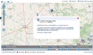 Mapa del lugar de la A-62 cortado al tráfico - 112