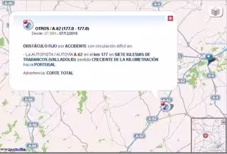 La DGT confirma el corte total de la vía en este punto de la A-62.