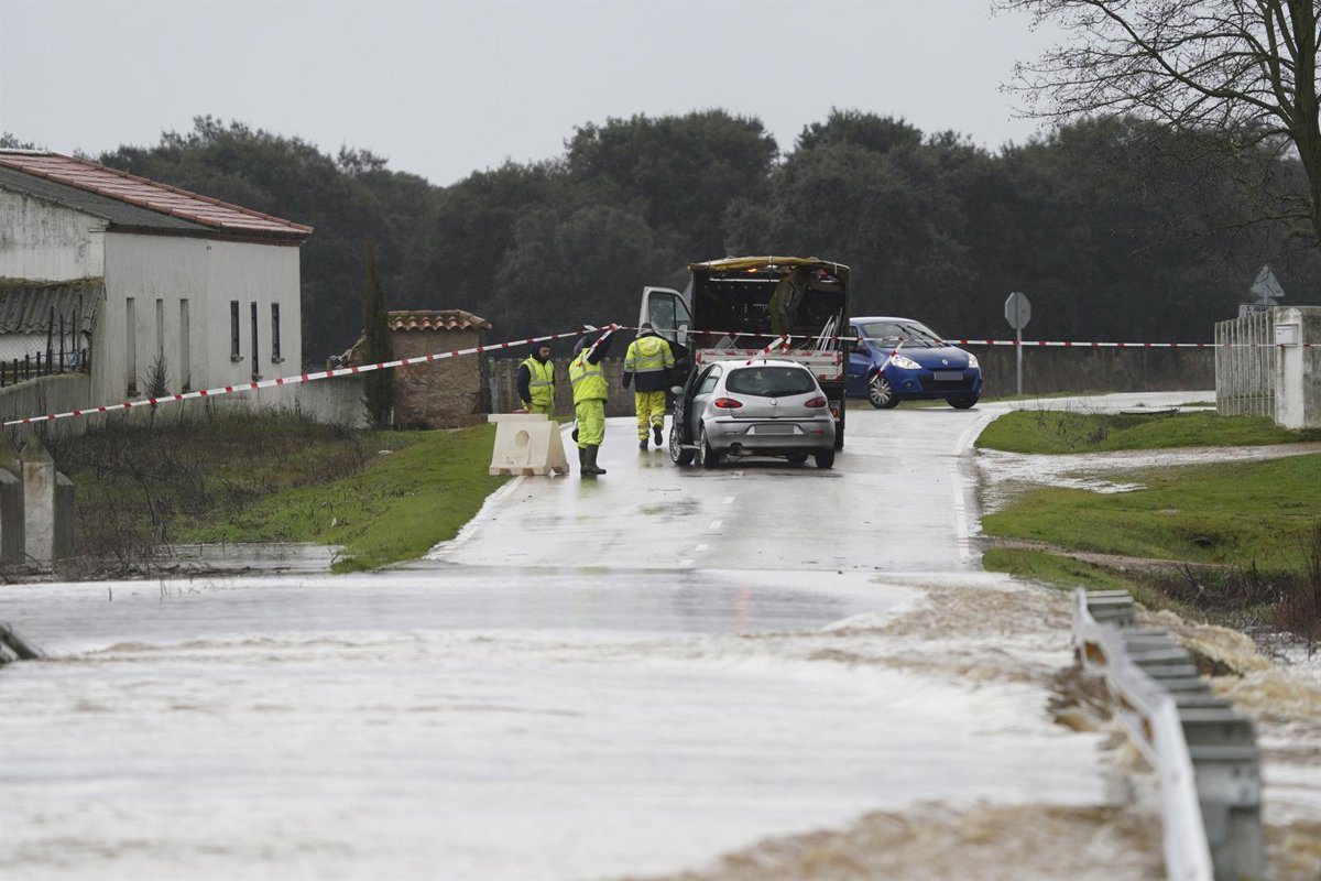 Cortado el acceso a La Valmuza por la carretera de Matilla de los Caños, la DSA-300, por el desbordamiento del arroyo Valmuza, a 5 de febrero de 2026, en La Valmuza, Salamanca - Manuel Ángel Laya - Europa Press