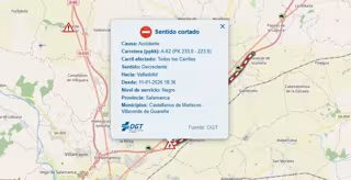 Según datos de la Dirección General de Tráfico, el corte se produce entre el kilómetro 233 en el Polígono Industrial de Salamanca al 223 en Villaverde de Guareña, sentido decreciente de la kilometración hacia Valladolid.