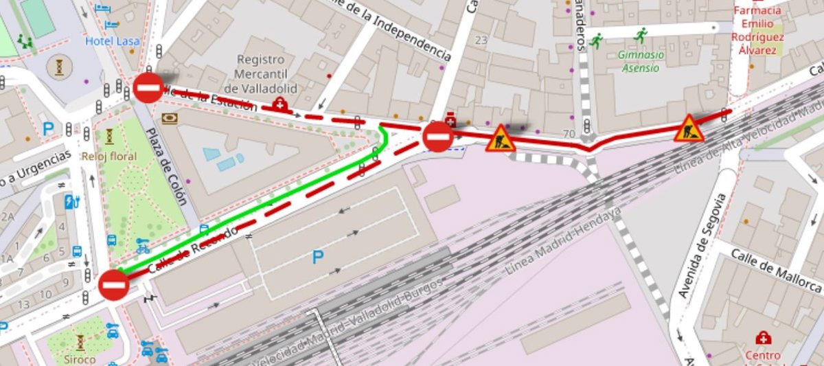 El cierre al tráfico afecta a la calle Estación, entre su acceso desde la plaza de Colón y la intersección con la calle Labradores, y también al carril de la calle Recondo en sentido a Estación.