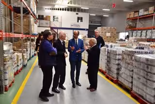 Luis Fuentes, en el centro de la imagen, visita las instalaciones del Banco de Alimentos. - CCYL