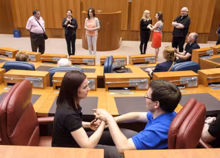 La presidenta de las Cortes, Silvia Clemente, ha recibido en el Parlamento autonómico a una representación de la Asociación de Sordociegos de Castilla y León. Durante el encuentro este colectivo ha trasladado a la presidenta la situación por la que pasan las cerca de 1.000 personas de la Comunidad que tienen el síndrome de Usher (principal causa de sordoceguera congénita y hereditaria) y que tienen esa doble discapacidad.