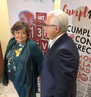 Dicho debate se ha incluido en unas jornadas organizadas por UGT con motivo de su 130 aniversario en Valladolid en las que también han participado el exjuez Baltasar Garzón; el abogado Miquel Roca, uno de los siete padres de la Carta Magna, o el expresidente del Gobierno José Luis Rodríguez Zapatero.