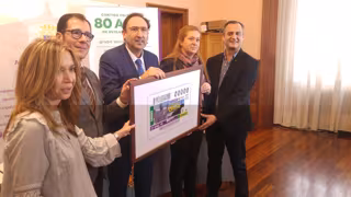 El alcalde de Palencia, Alfonso Polanco, y el delegado territorial de la ONCE en Castilla y León, Ismael Pérez, han presentado este miércoles este cupón en un acto que ha tenido lugar en el Ayuntamiento de Palencia, y en el que han estado acompañados por la directora de la ONCE en Palencia, Araceli de las Heras, y los concejales de Cultura y Servicios Sociales, Carmen Fernández Caballero y Luis Ángel Pérez Sotelo, respectivamente.