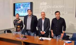 El delegado de Deportes de la Diputación de Salamanca, Jesús María Ortiz, el alcalde de Cristóbal de la Sierra, Antonio Luengo, el coordinador técnico de la Delegación Provincial de Atletismo, Casimiro Blanco, y el representante del Club de Atletismo de Guijuelo, José Ramón Martín, han presentado esta cita deportiva para la que están abiertas las inscripciones.
