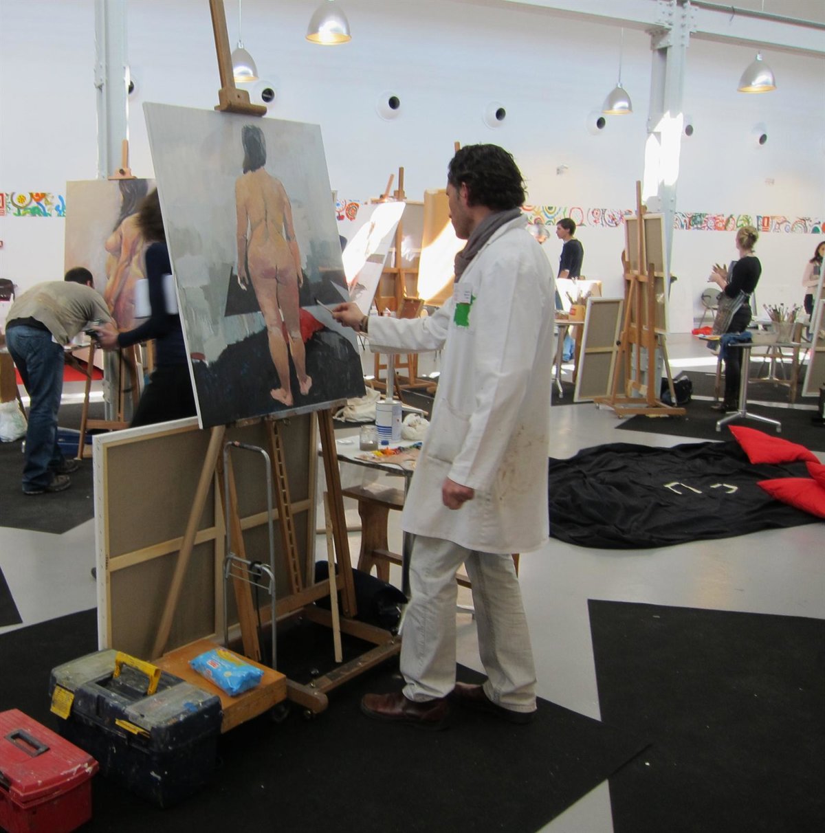 A lo largo de las sesiones prácticas del taller se comparten consejos, se comentan procedimientos y se investigan metodologías --"no se trata de aprendices y maestros, somos todos pintores"-- sobre las ideas y proyectos que cada participante vaya realizando, en este caso centrados en retratos de desnudos y bodegones a los que, en los próximos días, se sumará el paisaje.