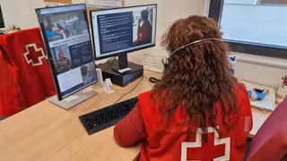 Voluntaria de la Cruz Roja realizando el seguimiento telefónico de la campaña 'En guardia contra el frío'. - CRUZ ROJA