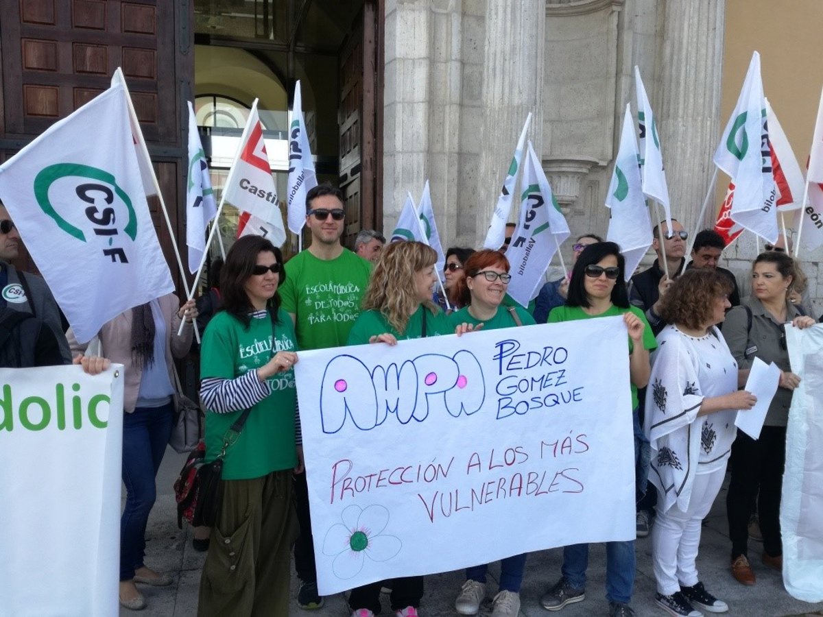 La Central Sindical Independiente y de Funcionarios (CSIF) ha apoyado la concentración convocada esta mañana ante la Consejería de Educación por varias asociaciones de madres y padres (AMPAs) de Valladolid de centros de educación especial y de integración, que han exigido puestos estables y de jornada completa para el personal laboral que atiende a los alumnos con necesidades educativas especiales (ACNEE), ya que existen muchos abusos en la movilidad de estos profesionales.