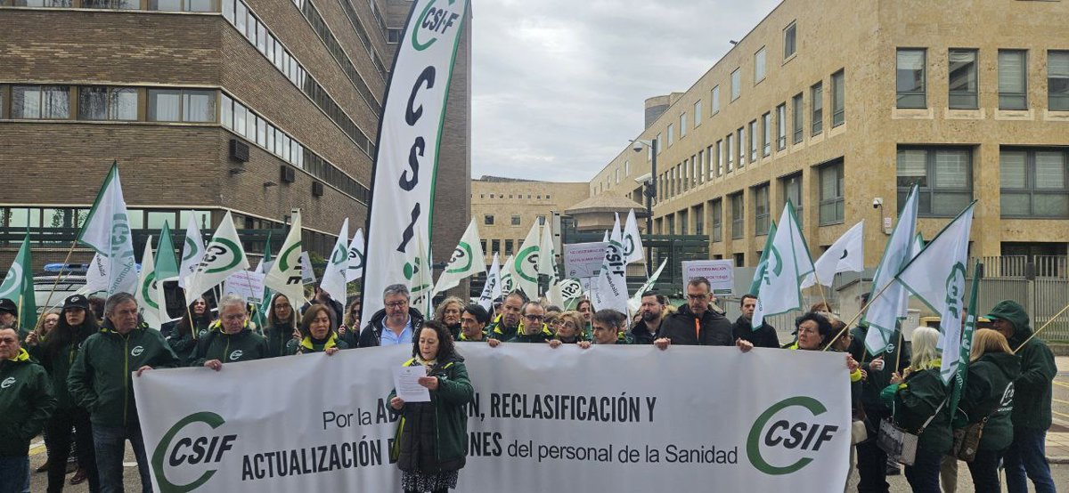 La Central Sindical Independiente y de Funcionarios (CSIF) ha protagonizado este miércoles una concentración ante la Delegación del Gobierno, en Valladolid, para denunciar la situación crítica en la que se mantiene el Sistema Nacional de Salud, el deterioro que se observa en la calidad de los servicios que reciben los ciudadanos y las pésimas condiciones laborales del personal.