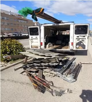 La patrulla, tras una inspección del vehículo que tenían en las inmediaciones, intervino varias chapas de las utilizadas para el cerramiento del techo y paredes de una nave, así como varias estructuras metálicas de la misma, además de dos vigas del techo de unos 8 metros de longitud, junto con varias herramientas y guantes.