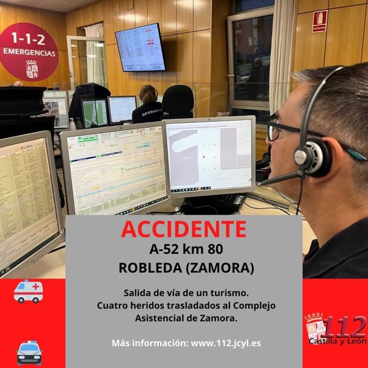 La sala de operaciones del 1-1-2 dio aviso del incidente a la Guardia Civil de Tráfico de Zamora y a Emergencias Sanitarias - Sacyl que envió una UVI móvil y una ambulancia soporte vital básico.
