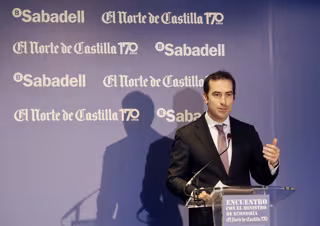 El Ministro de Economía, Comercio y Empresa, Carlos Cuerpo, interviene durante un encuentro de El Norte de Castilla, en Valladolid. - MIGUEL ÁNGEL SANTOS - Europa Press