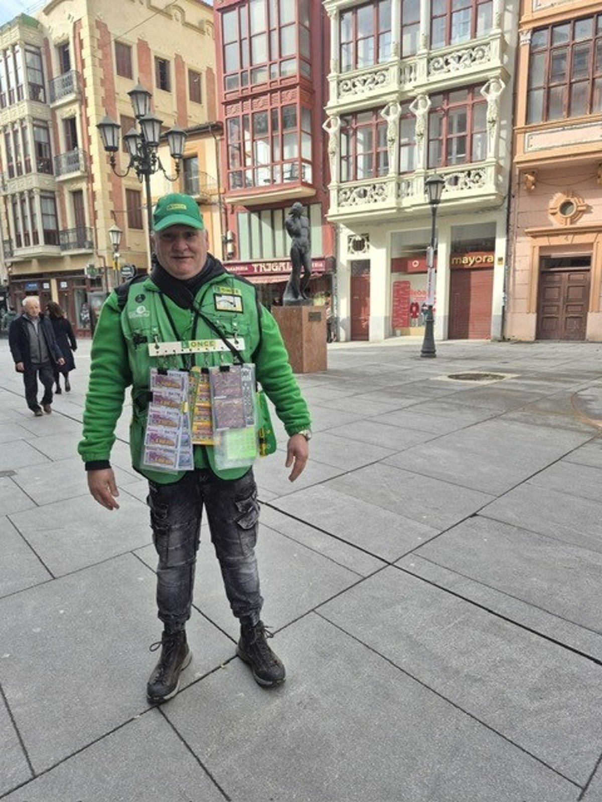 Ángel Pascual Martín es el centinela de la ilusión que ha llevado la suerte a la localidad zamorana desde su punto de venta situado en la Plaza de Sagasta.