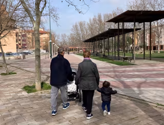 Dos abuelos pasean con su nieta en Valladolid. - EUROPA PRESS