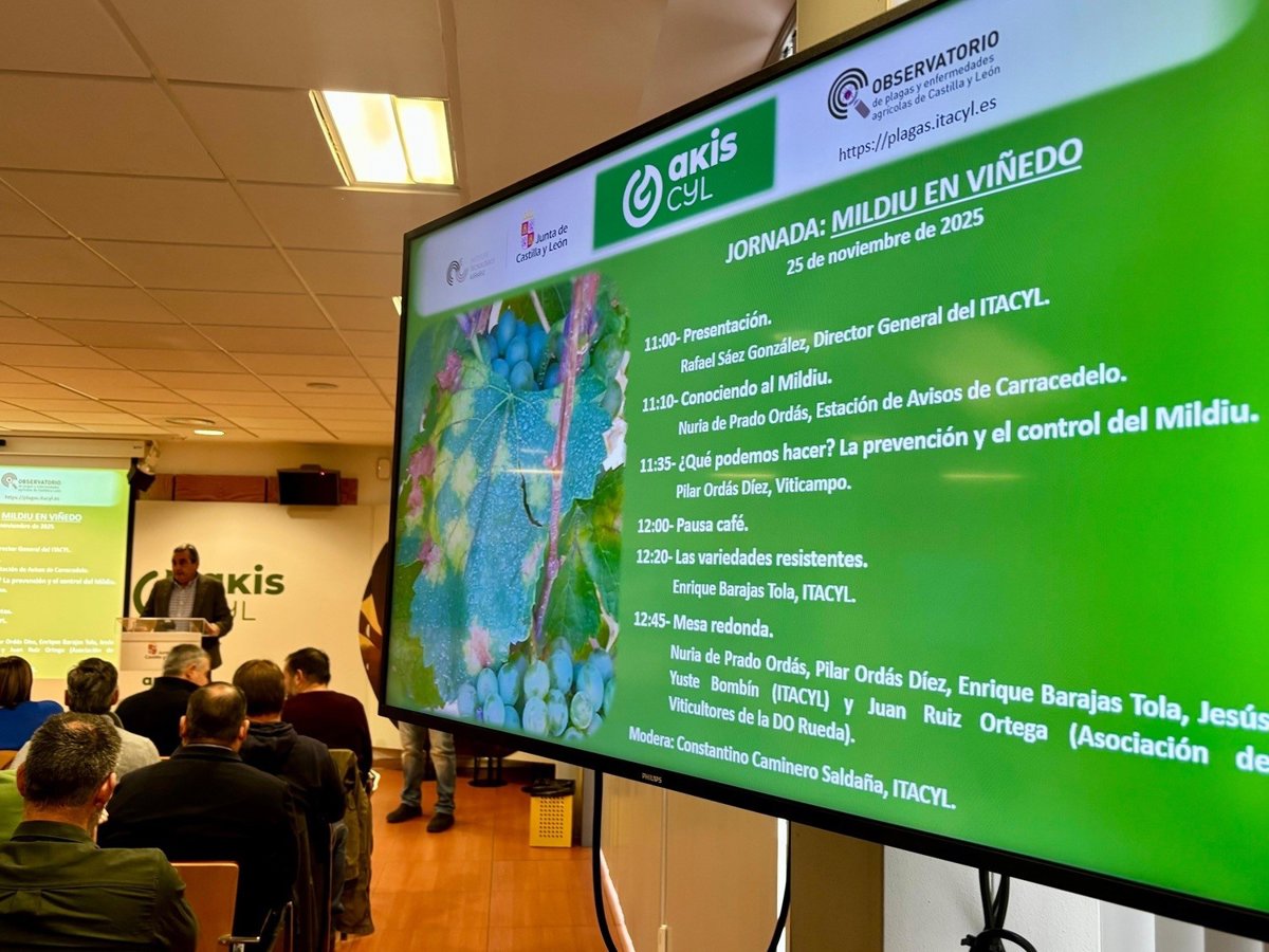 La jornada, titulada 'Mildiu en Viñedo', es la primera acción formativa contemplada dentro de las conclusiones del grupo Akiscyl dedicado a la salud de los cultivos y da cumplimiento al compromiso adquirido por la Consejería de Agricultura, Ganadería y Desarrollo Rural con el sector, dada la incidencia que esta enfermedad ha tenido durante la presente campaña, detalla la Junta a través de un comunicado.