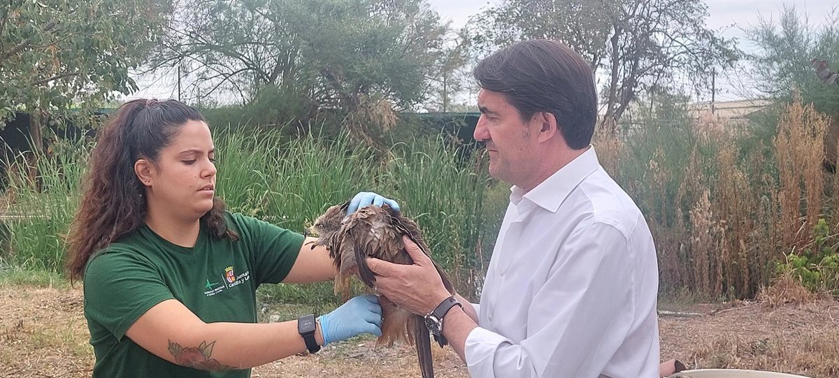 Suárez-Quiñones ha asistido este martes a la liberación de un Milano Negro en el CRAS de Valladolid. Sobre el proceso de reintroducción en el medio natural de este tipo de aves, el veterinario del Centros de Recuperación de Animales Silvestres de Valladolid, Álvaro Soto Arrieta, ha señalado que "previamente se realiza un anillamiento" del animal que permite conocer su "trazabilidad" y "perimetrar" su zona de vuelo, una vez es liberado.