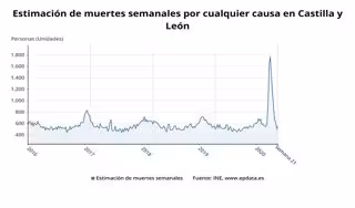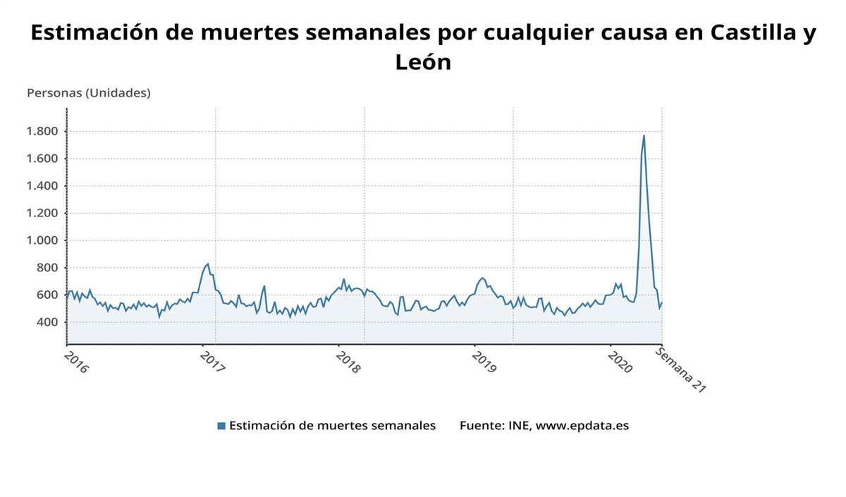El número estimado de defunciones en Castilla y León durante las 21 primeras semanas de 2020, hasta el pasado 24 de mayo, asciende a 16.819 personas, lo que supone 4.210 más que en el mismo periodo del año 2019, un 33 por ciento más aunque en términos porcentuales las mayores subidas en la cifra de fallecidos se da en Segovia, con un 94,7 por ciento más y en Soria, con un 65,07 por ciento más.