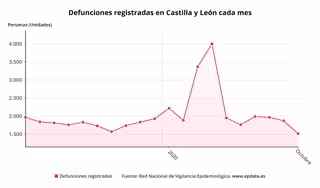 Gráfico de elaboración propia sobre las defunciones registradas en CyL cada mes - EPDATA