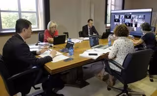 La consejera de Sanidad, Verónica Casado, a la izquierda, durante la reunión mantenida con la Federación Regional de Municipios y Provincias. - JCYL