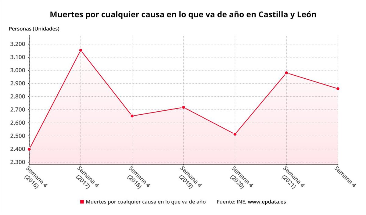 Gráfico con la evolución de las defunciones en CyL. - EPDATA EUROPA PRESS
