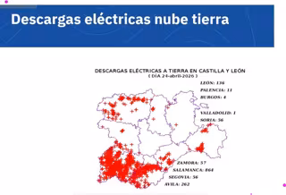Por el contrario, la incidencia fue mucho menor en provincias como Palencia, con once descargas, Burgos, con cuatro, y Valladolid, donde apenas se registró una, según datos difundidos por la Agencia Estatal de Meteorología (Aemet).