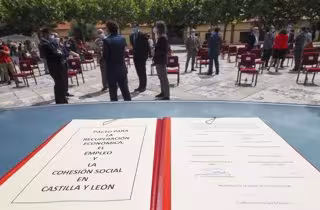 "Hay alternativa a la confrontación, la fuerza surge de la concordia para hacer entre todos un futuro mejor". Así lo ha resumido el presidente de la Junta de Castilla y León, el 'popular' Alfonso Fernández Mañueco, tras rubricar el Pacto para la Reconstrucción Económica, el Empleo y la Cohesión Social de la Comunidad que se compone de 86 medidas destinadas a paliar los efectos del COVID-19 entre las que se incluyen 780 millones de euros para un Plan Social y 250 más destinados a sanidad.
