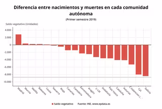 Con estos datos Castilla y León se sitúa como la segunda Comunidad con el saldo vegetativo más negativo (-8.007) tras Galicia, que registró -8.426 personas. Así, tras ellas se sitúa Valencia con -5.287. El saldo vegetativo sólo fue positivo en Ceuta y Meilla (119 y 219), Baleares (219 personas más), Murcia (359 personas) y Madrid (2.840 personas más).