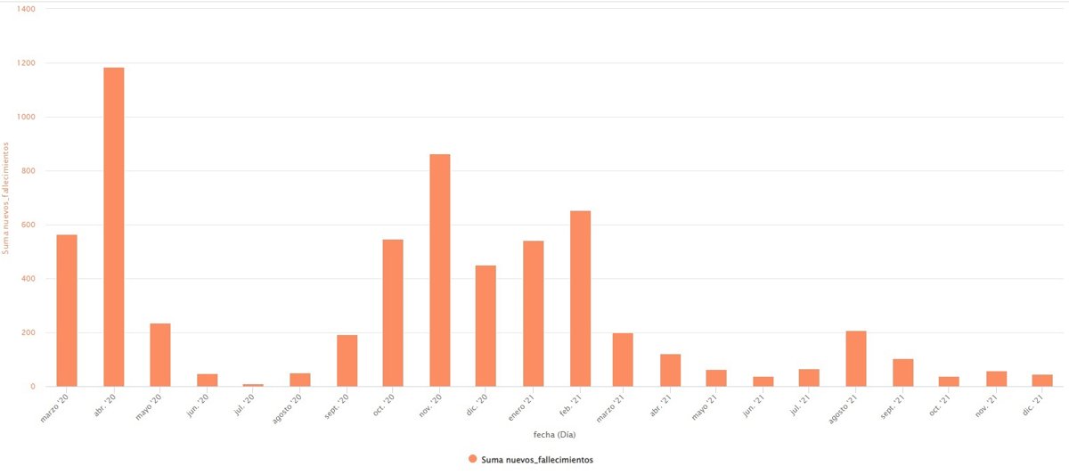 Los 39 fallecimientos registrados entre el pasado sábado, 4 de diciembre, y hoy día 10 suman una cifra similar a la que se dio entre el 27 de julio y el 2 de agosto (38), una semana en la que se alcanzó el pico de incidencia de la quinta ola del COVID-19, con 900 casos por cada 100.000 habitantes en 14 días (actualmente la tasa es menor, de 431).